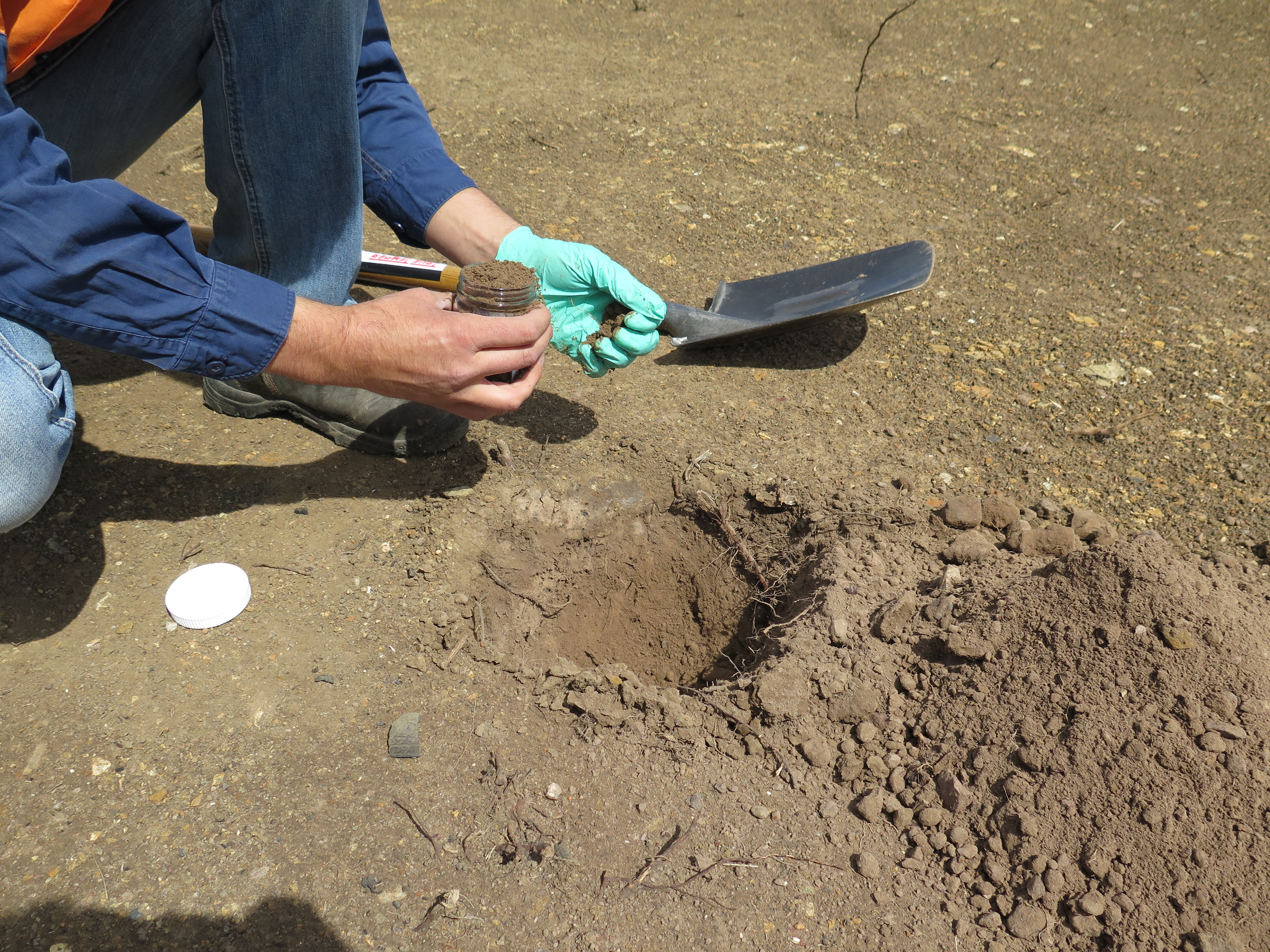I watched Eckhard collect and test the soil and asked a series of questions which he kindly answered with patience. Things like – “What’s with the gloves?” (to stop cross contamination) And “what’s that in the bucket?” (water, of course). This procedure of soil testing was a molecular and scientific way of rendering soil and contaminants, but there are also situated soil knowledges. A farmer or gardener might know if soil is good or bad by kicking it, smelling it, looking at it, feeling it. These sensorial engagements with soil are a science too – based on years of empirical data gathered from working with a living and connected world. We might know soil through the beings connected to it – the way plants grow tells us something about the conditions of the soil. Deleuze and Guattari observe, plants, even as their roots dig deep into earth, always have an ‘outside where they form a rhizome with something else – with the wind, an animal, human beings…’ (A Thousand Plateaus: 11). In this rhizomatic assemblage of relations we might come to know soil as it journeys through roots into the bodies that make up a multispecies community. Eduardo Kohn, in his inspired How Forests Think explains the way a ‘multispecies assemblage captures and amplifies something about the differences in soil conditions precisely as a function of the greater number of relations (relative to other ecosystems) among kinds of selves that exist in this ecology of selves’ (83). Through this network the differences that make a difference (Bateson) are layered, so that differences in soil come to make differences in plants and the other life forms connected to those plants too.